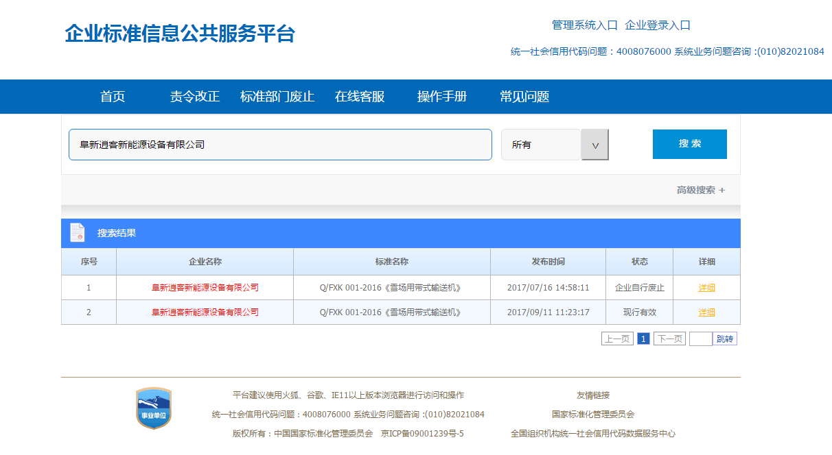 阜新逍客新能源設備有限公司雪場用帶式輸送機國家企業標準信息公共服務平臺可查